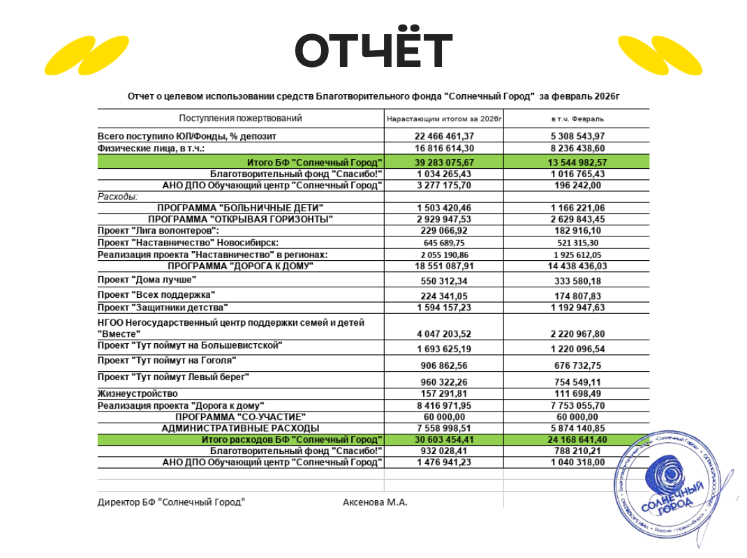 Отчет о тратах фонда в феврале 2026 года